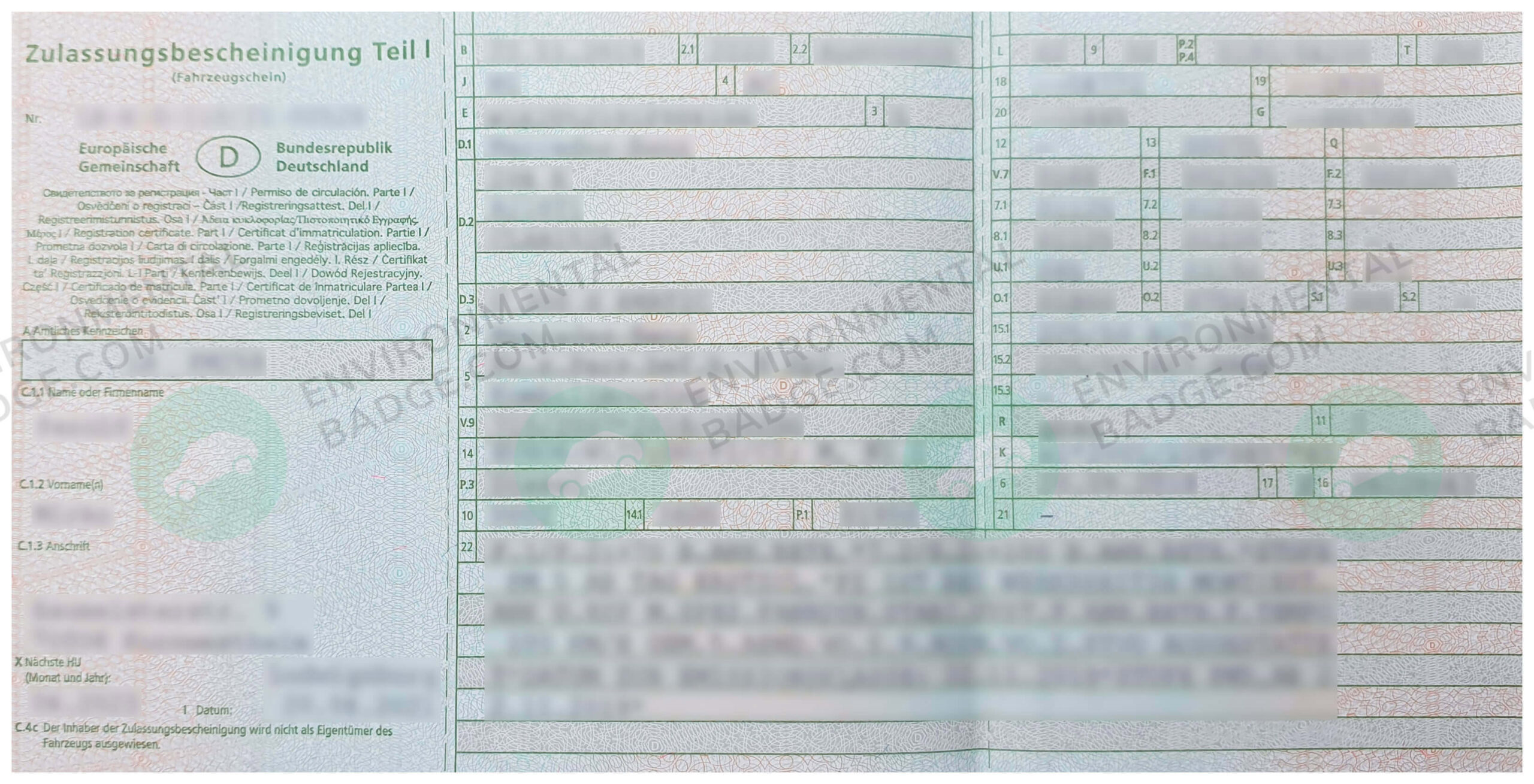 Staatliche Regelungen schreiben vor, dass für die Ausgabe der Umweltplakette die Zulassungspapiere des Fahrzeugs vorzulegen sind.